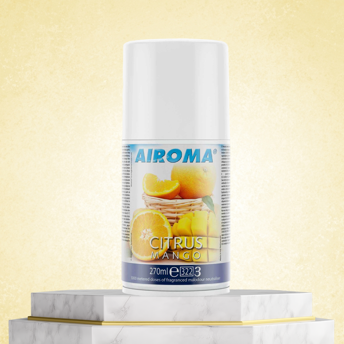 - Airoma® 270ml Refills will fit the Airoma® Air Freshener Dispenser and other aerosol air freshener dispensers.