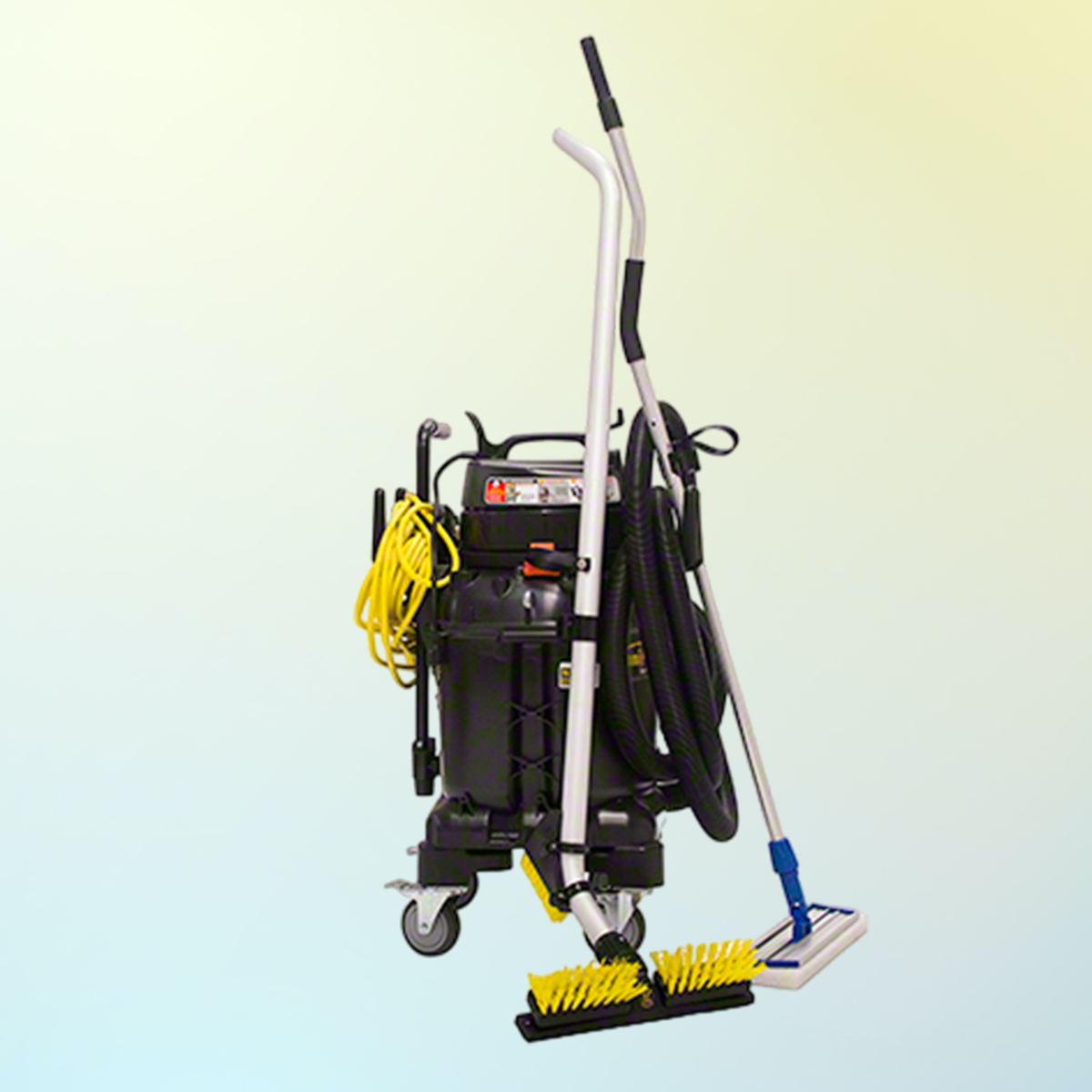 Just apply a fresh cleaning solution to the floor, spread and lightly brush into grout lines, and then completely vacuum away all soils and liquid, leaving floors really clean and bone dry. It’s perfect for daily cleaning and degreasing of commercial floors. The process cleans radically better, faster, and safer than cleaning with a mop. It’s also great for applying and removing strippers on finished floors.